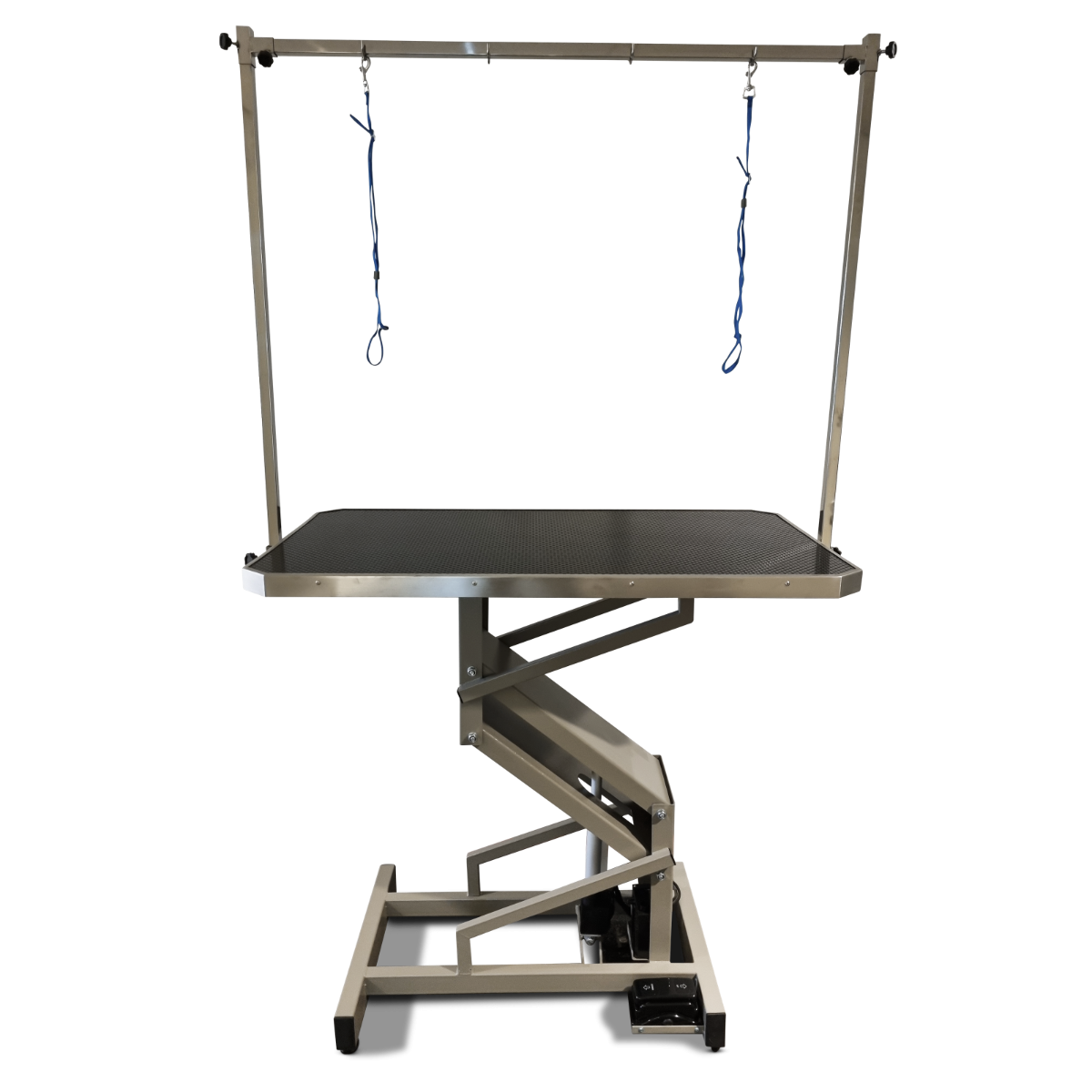 Dieser professionelle Pflegetisch ist dank seiner hervorragenden Stabilität und seines sicheren Designs für jeden Hundefriseur und jede Rasse geeignet. Die Tischplatte ist aus robustem, 18 mm dickem MDF-Material gefertigt, das für Langlebigkeit und Zuverlässigkeit sorgt.